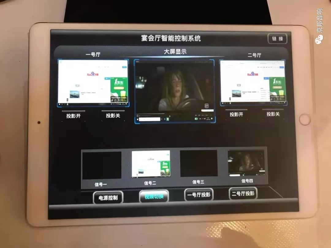 中控系統:為了宴會廳內各系統設備的順利使用和管理,采用中央控制系統進行統一管理和控制。通過中央控制系統來控制顯示屏、DVI矩陣、音頻矩陣切換器、音響系統等所有設備的電源開關,顯示屏等信號切換以及DVD、攝像機等各種視頻信號切換??赏ㄟ^單鍵實現多種功能同時動作。